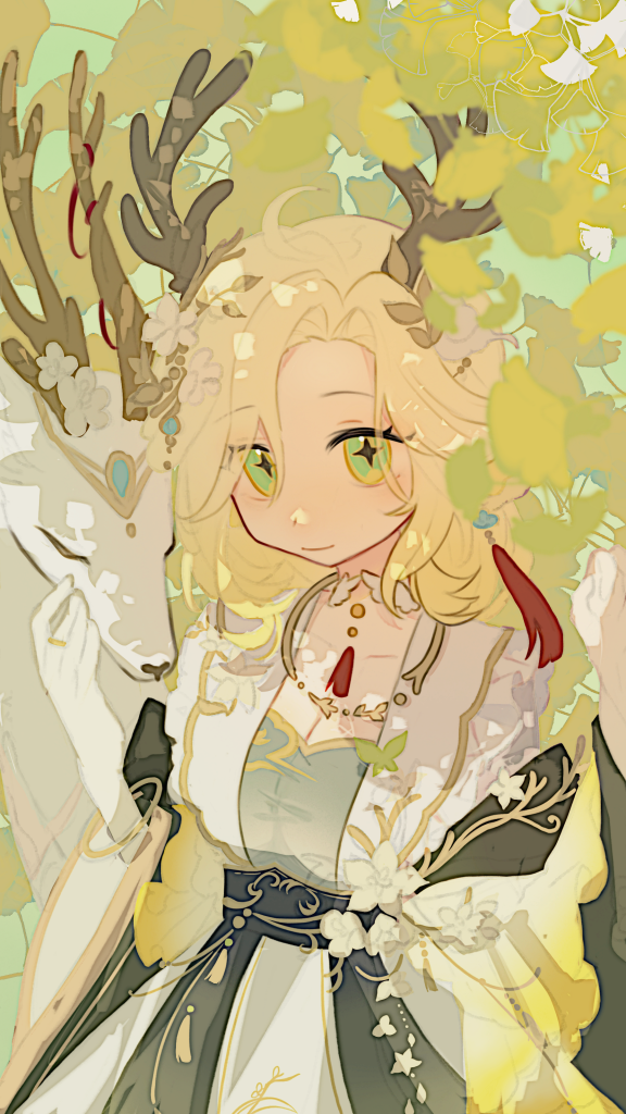身边总有一只白鹿,为她带来有暖金色的银杏。