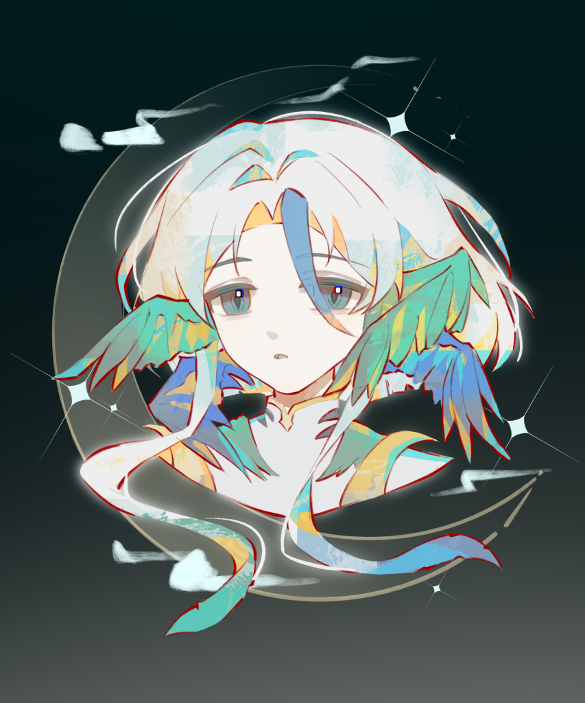 一只栖竹而生的青鸟,尾羽修长如夜风,翎间悬一轮淡青色的朦胧月亮。